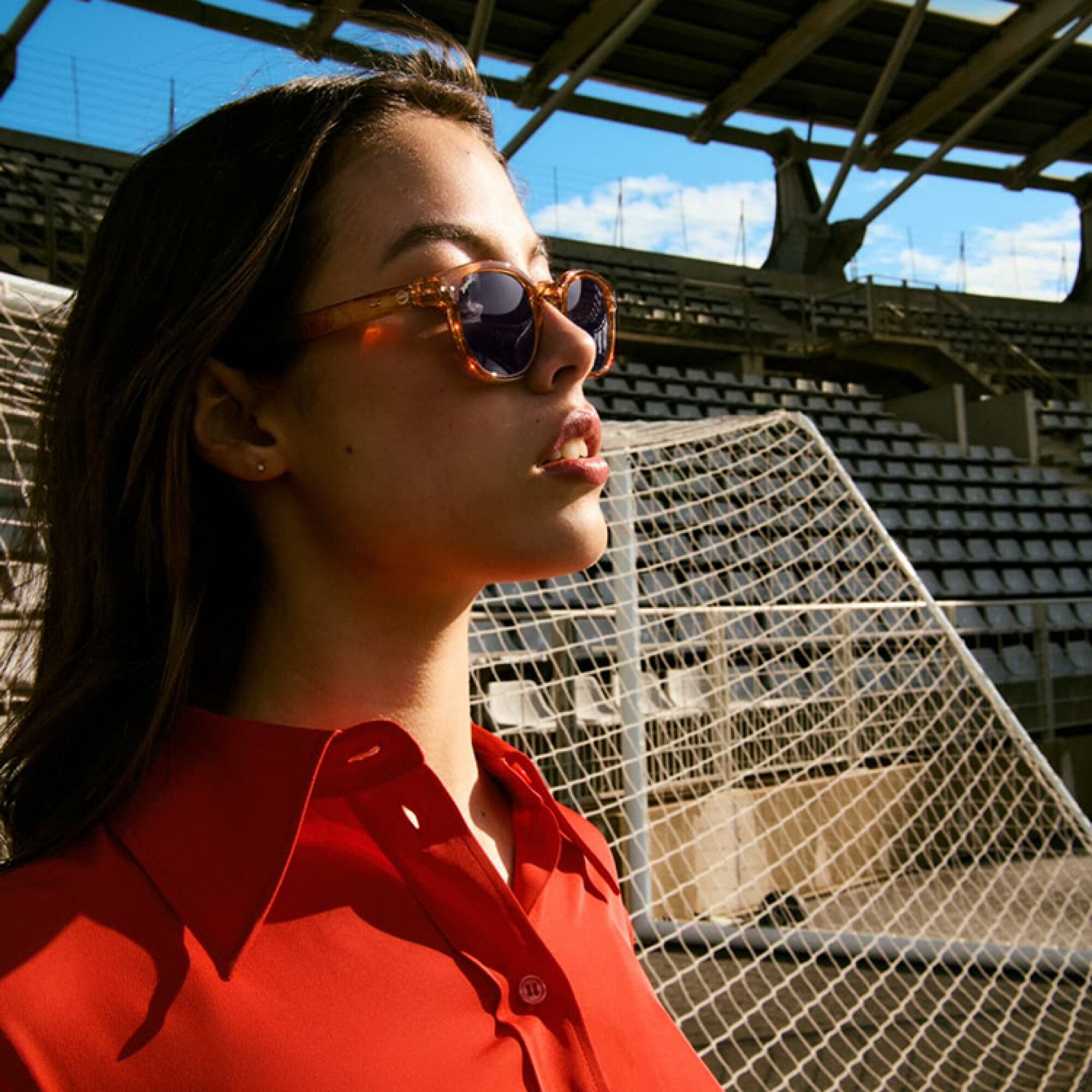 El modelo Sun #C de IZIPIZI adopta una montura de forma cuadrada-redondeada que combina carácter urbano con ligereza. La versión “Warm Orange”,se destaca por su color naranja-cálido y lentes estándar que ofrecen protección solar.