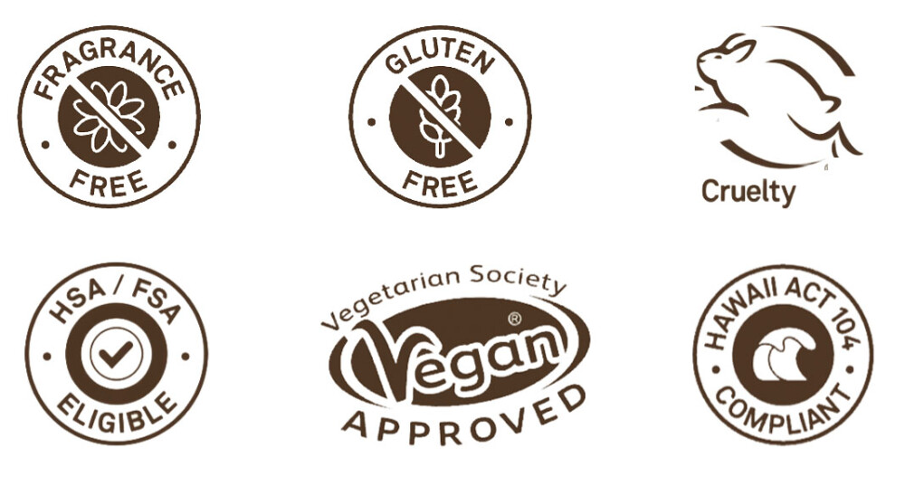 Vegano, Cumple con la Ley 104 de Hawái sobre Arrecifes, Libre de Crueldad, Sin Gluten, Libre de Parabenos, Libre de Oxybenzone y Octinoxato, Protección de Amplio Espectro, Libre de Aceites, Libre de PABA, Libre de Propilenglicol, Libre de Palmitato de Retinilo, Resistente al Agua (80 minutos).