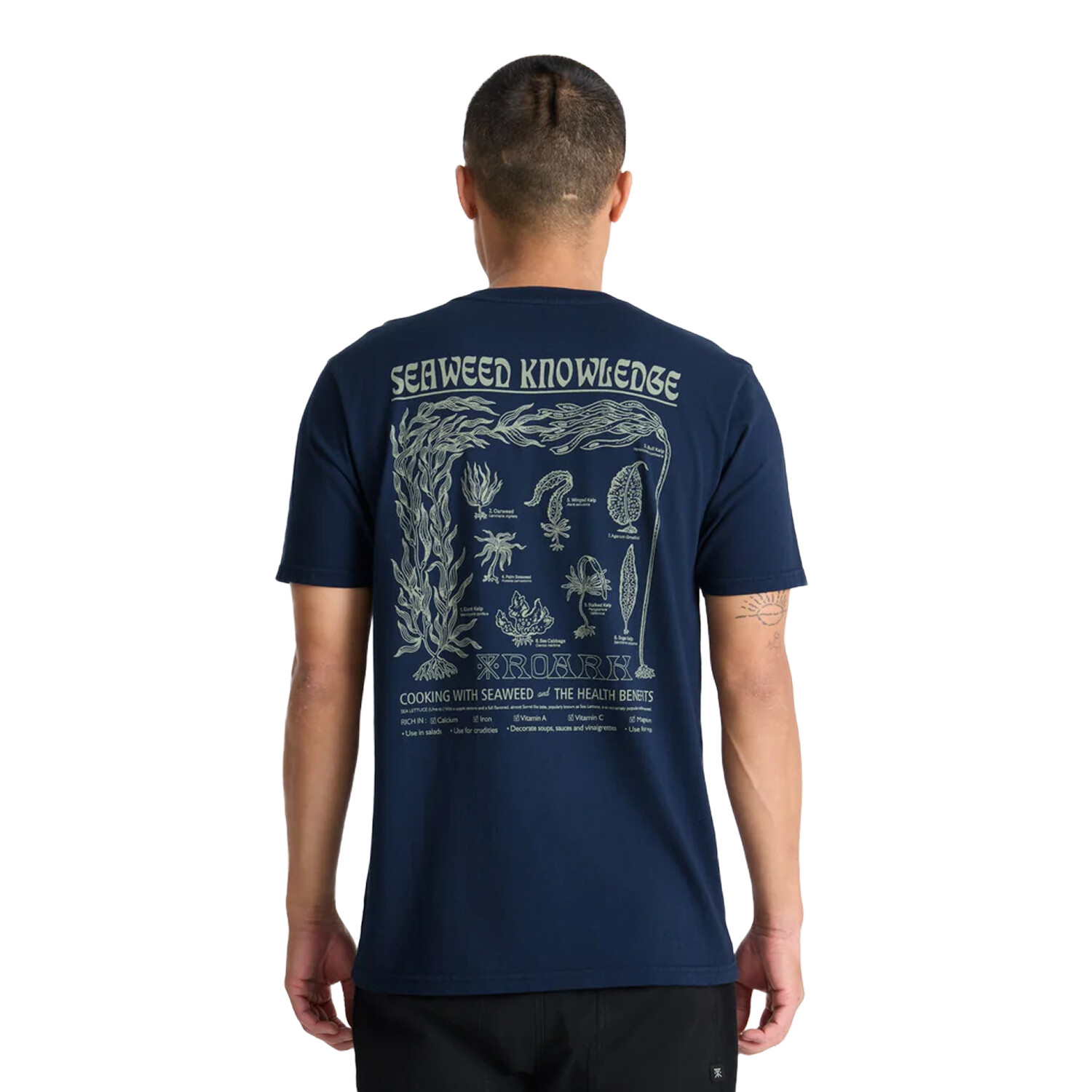 La camiseta Seaweed Knowledge forma parte de la colección cápsula Tidal Tempo, inspirada en los ritmos costeros y las comunidades que se mueven al compás de las mareas. El diseño resalta las algas comestibles y sus usos, combinando la sabiduría del océano con la funcionalidad cotidiana.